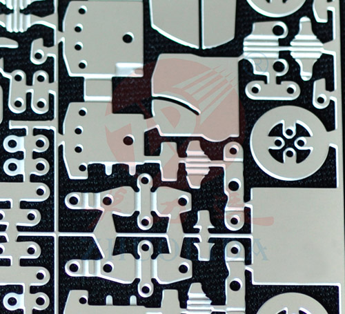 能制出很細(xì)致的細(xì)部線條,比較適合超細(xì)部的表現(xiàn),但因其硬度高,所以在切割及加工時(shí)較麻煩,而且無法用一般的烙鐵來焊接組合。銅的外觀不及不銹鋼的亮麗,但硬度低,很容易加工,可以用一般的烙鐵來焊接組合。左上為AFV CLUB的M-88回收戰(zhàn)車的不銹鋼材質(zhì)細(xì)部零件,可注意它的網(wǎng)目有多么細(xì)。左下為TAMIYA的不銹鋼材質(zhì)[ 工具 ],可用它來刮出戰(zhàn)車表面的防磁紋構(gòu)造。右邊為STENCILIT的銅材質(zhì)[ 噴漆型板 ],可用來噴出各種圖案。由這三個(gè)產(chǎn)品來看,蝕刻片不光是用在細(xì)部零件用途上而已,現(xiàn)已有更多的輔助工具是利用它的特性所制成。